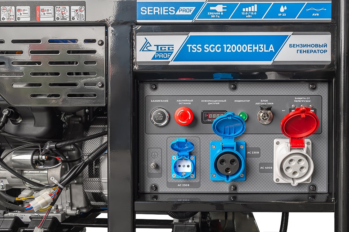 Бензиновый генератор 3-фазный на 12 кВт с электростартом, с возможностью подключения блока АВР (блок автоматики). Профессиональная серия бензиновых электрогенераторов с высококачественными двигателями увеличенного ресурса LONCIN. Бензиновый генератор TSS SGG 12000EH3 предназначен для выработки электроэнергии с основными характеристиками: напряжение 220-380 вольт, частота 50 Гц и номинальной мощностью 12 кВт. Модель оснащена колесным комплектом, для удобства передвижения, отличается от других моделей увеличенным топливным баком 40 литров.