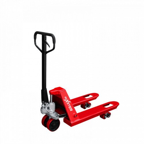 Гидравлическая тележка FOXSTER AC 25 — это популярная модель на российском рынке. Она способна перевозить грузы до 2 500 кг благодаря усиленному гидроцилиндру. Полиуретановые колеса обеспечивают легкость передвижения, а вилы размером 800x550 мм подходят для работы с небольшими паллетами или для маневрирования по их короткой стороне.