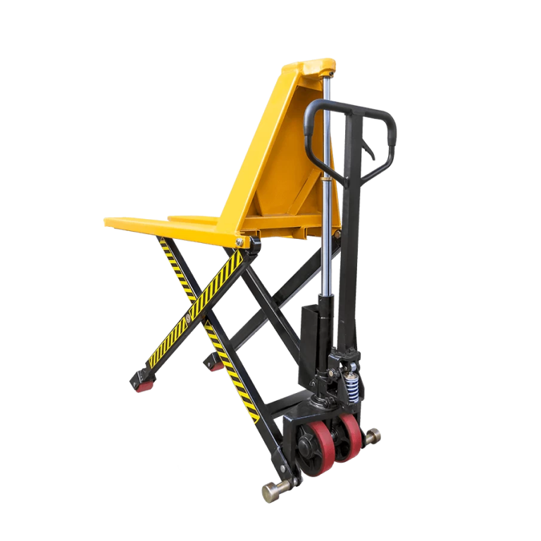 Тележка обеспечивает комфортную работу, избавляя от необходимости постоянно наклоняться. С ней можно легко поднимать, перемещать, загружать и сортировать грузы с поддона на транспортную ленту или в кузов автомобиля. Телескопическая конструкция гидроцилиндра делает тележку компактной и легкой, что упрощает её использование.