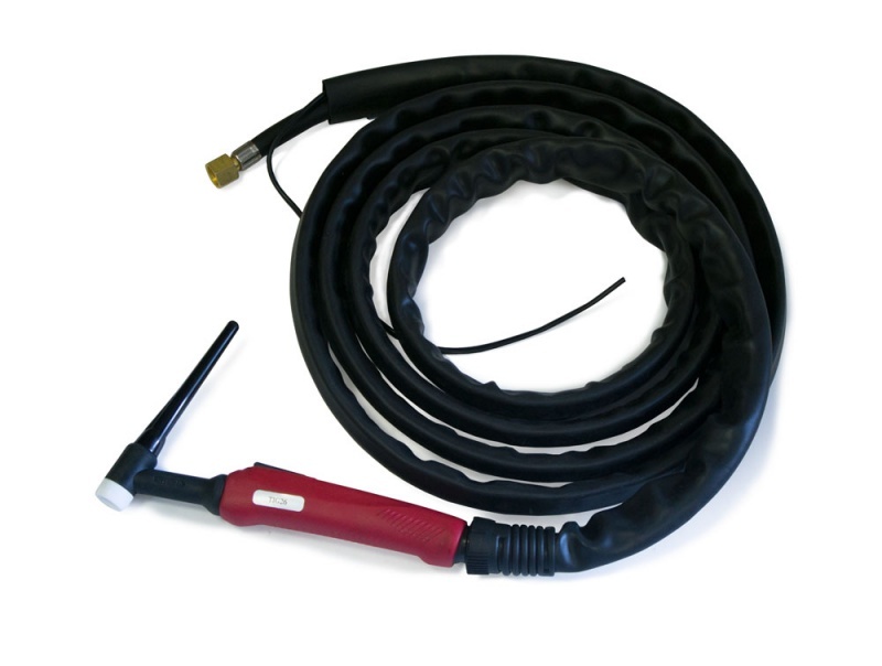 Горелка оснащена силовым TIG PLUG 50 с газовым 0.6 метра шлангом с б/р фитингом под газ. В комплекте поставки управляющие разъёмы 2/3/5 pin. В случае несовпадения газового коннектора с аппаратной частью, необходимо приобрести дополнительно соответствующий аппаратной части фитинг.
