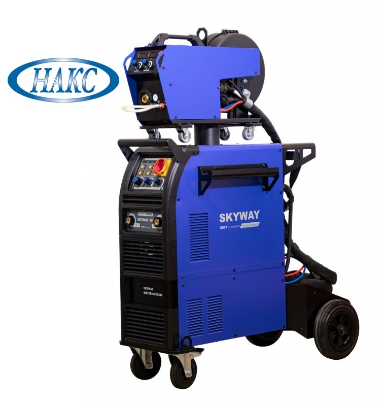 SKYWAY 500 – 3-х фазный инвертор для полуавтоматической сварки в среде инертного/активного защитного газа MIG-MAG и ручной дуговой сварки штучным электродом MMA, - как с источника так и с выносного подающего механизма. Тележка с подставкой под баллон, высокая компоновка аппарата, встроенная станция охлаждения, подающий механизм "декомпакт" в базовом комплекте поставки - все эти моменты существенно облегчают работу сварщика и значительно увеличивают время непрерывной работы аппарата. SKYWAY – это передовая технология инверторного блока IGBT, отличные сварочные характеристики и превосходная эргономика управления.
