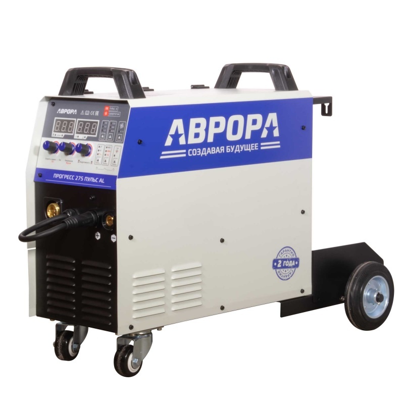 АВРОРА ПРОГРЕСС 275 ПУЛЬС Al – «Умный» инвертор с полностью цифровым управлением на базе ARM платформы 32 бит 72МГц, с питанием 400В. Трёхфазный источник сварочного тока предназначен для полуавтоматической MIG-MAG сварки, для ручной дуговой сварки штучным электродом MMA, а также для аргонодуговой сварки в режиме LIFT TIG DC. Аппарат выполнен в едином корпусе со встроенным подающим механизмом, рассчитанным для использования катушек D200 и D300 (5-20кг). Тележка с подставкой под баллон и высокая компоновка аппарата существенно облегчают работу сварщика. Аппарат ориентирован на грузовые и легковые автосервисы, производства и мастерские, которым приходится решать сложные сварочные задачи.
