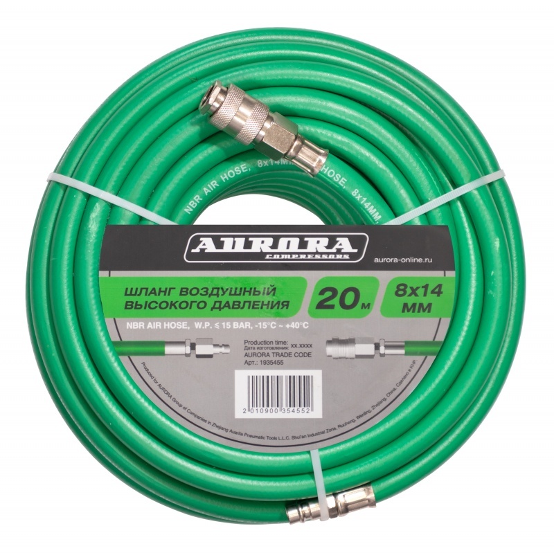 Пневматические шланги AURORA предназначены для подключения разнообразного инструмента к источникам сжатого воздуха: пневмомагистралям, компрессорам и т.д. Широкий выбор диаметров и длин шлангов AURORA позволит подобрать именно тот вариант оснастки, который необходим для каждой конкретной ситуации от подкачки шин до работы гайковёртов, краскопультов, полировальных машин и пр. Рукава изготовлены из синтетического каучука (NBR), армированного капроновой нитью и предназначены для работы со сжатым воздухом с давлением до 15Бар. Температура эксплуатации от -15 до +40С. Шланги оснащены фитингами рапид.