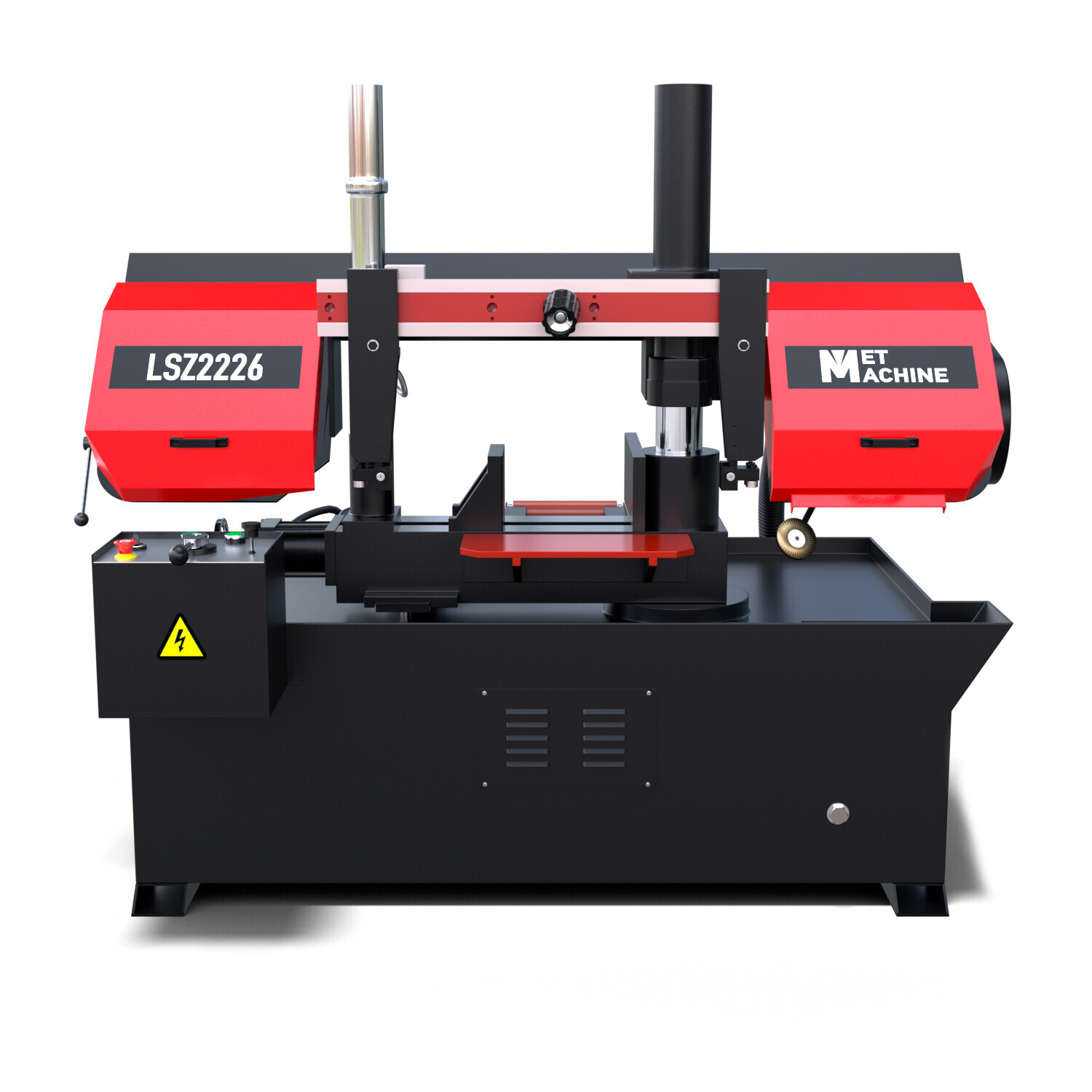 Полуавтоматический ленточнопильный станок MetMachine LSZ2226 представляет собой горизонтальное устройство с поворотными тисками, предназначенное для обработки различных материалов, включая металлы, пластмассы, графит и теплоизоляцию.