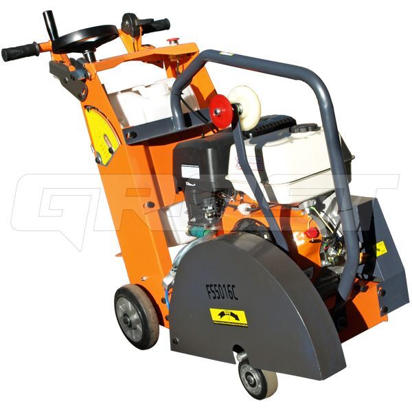Улучшенная модель швонарезчика GROST FS5016C с задним расположением бака для воды имеет максимальный диаметр диска 500 мм, центр тяжести расположен так, что обеспечивается максимальная эффективность при резке, качество узлов улучшено, и скорость вращения диска при резке постоянна.