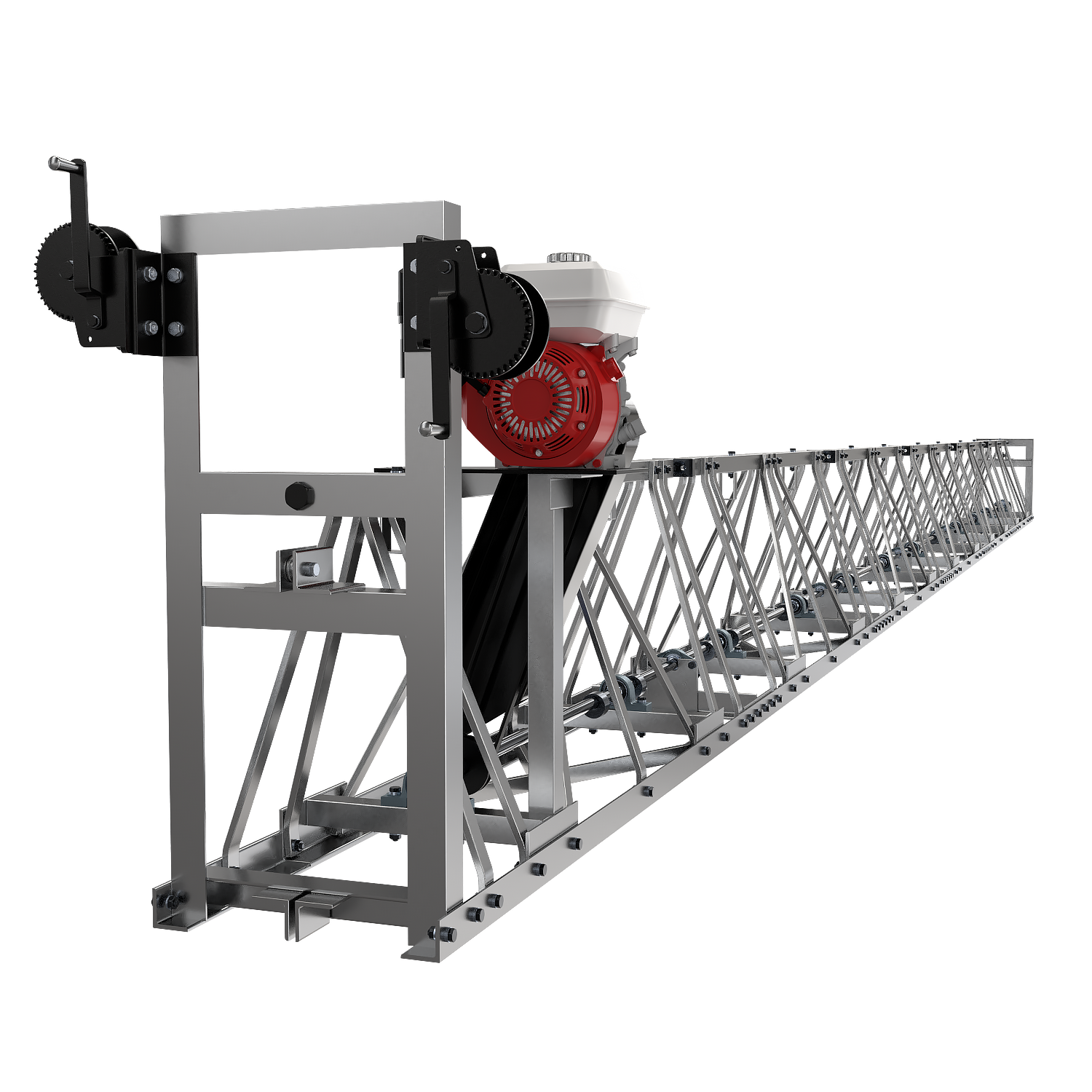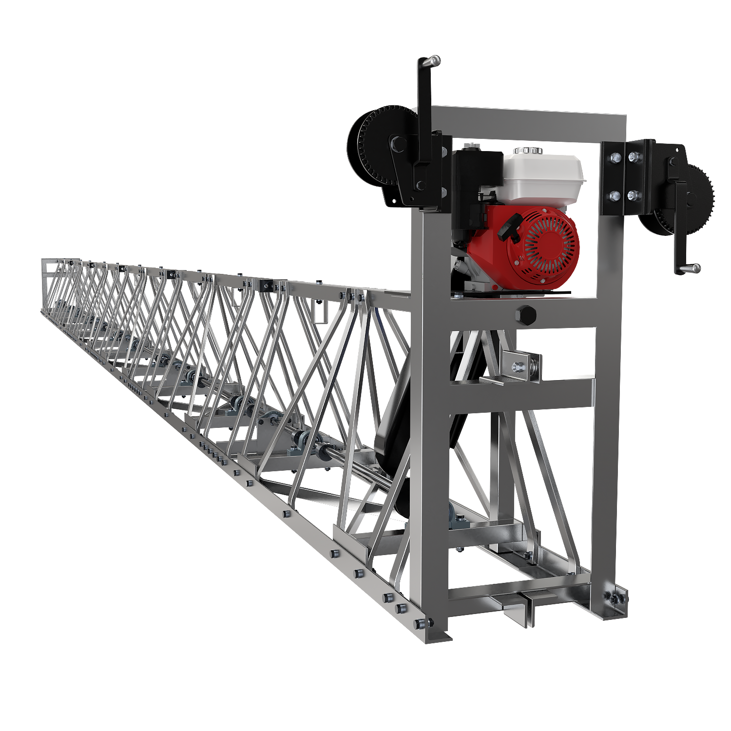 На головную секцию устанавливается привод с двигателем, что обеспечивает бесперебойную работу оборудования. Между головной и конечной секциями можно добавлять дополнительные секции, что позволяет увеличить общую длину виброрейки до 12 метров, что делает её подходящей для решения самых разнообразных задач.