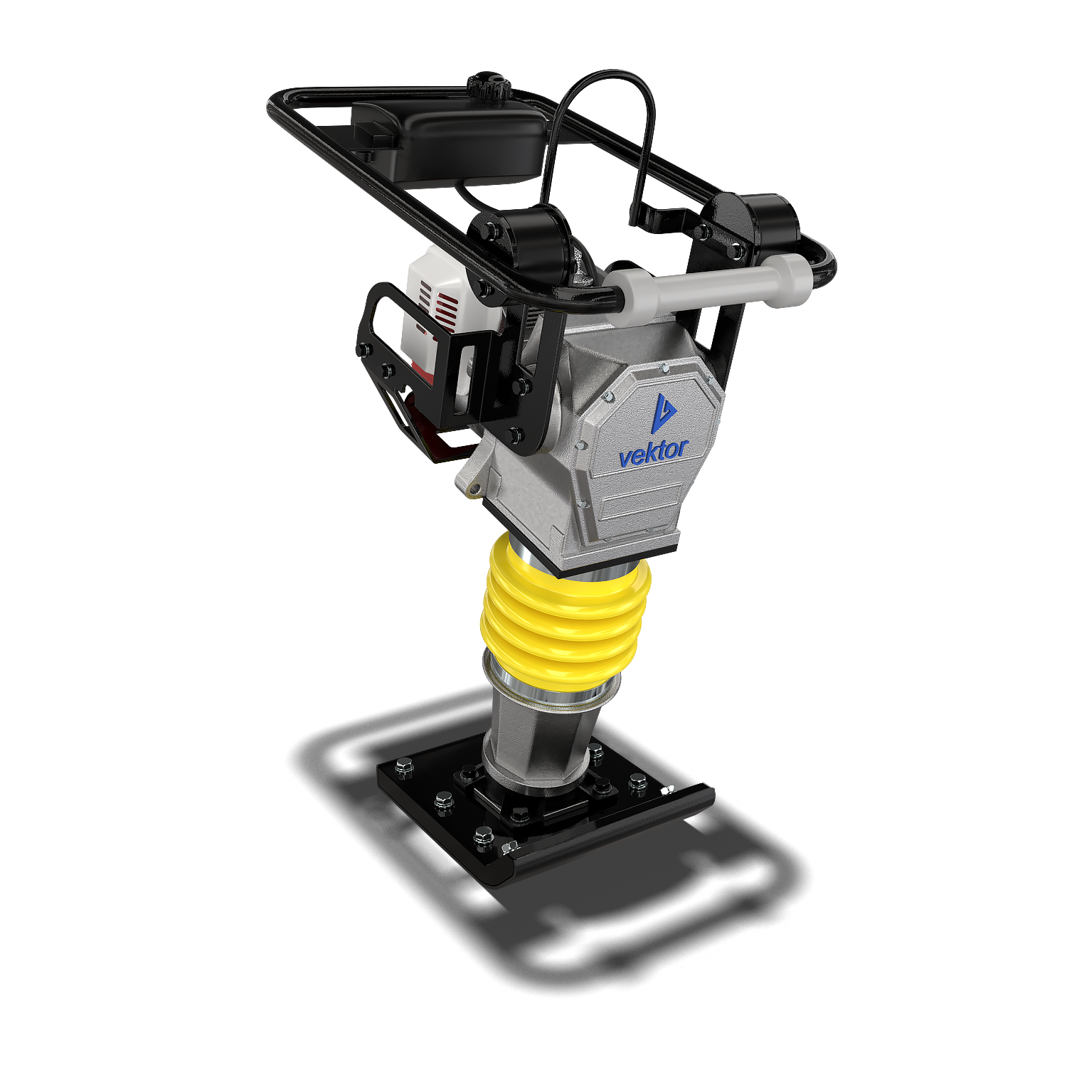 Вибротрамбовка (вибронога) Vektor VRG-72 — это уникальное устройство с ударным механизмом и небольшой уплотняющей поверхностью, которая представляет собой каучуковую подошву размером 330х290 мм.